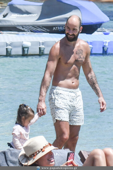 Ειδικά ο γνωστός μπασκετμπολίστας, πέρασε πολλή ώρα παίζοντας στην άμμο με τα παιδιά του, τον Θανάση, τον Βασίλη, τον Δημήτρη, την Αιμιλία και την Αναστασία.