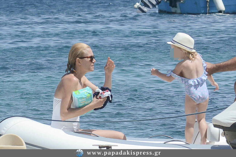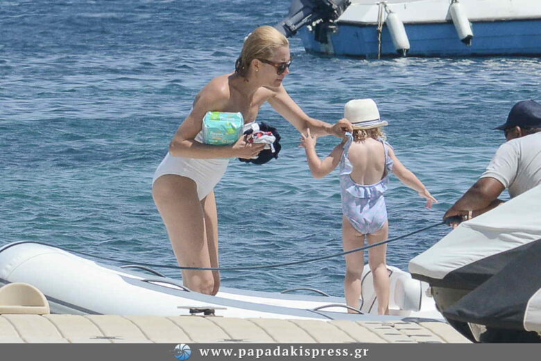 Σε όμορφες στιγμές με την κόρη της Μπιάνκα στη Μύκονο, εντοπίσαμε την Βίκυ Καγιά.