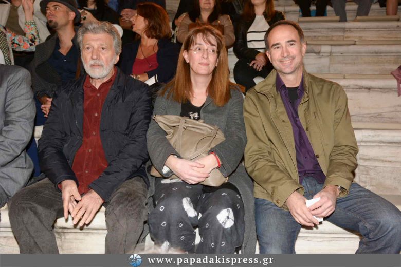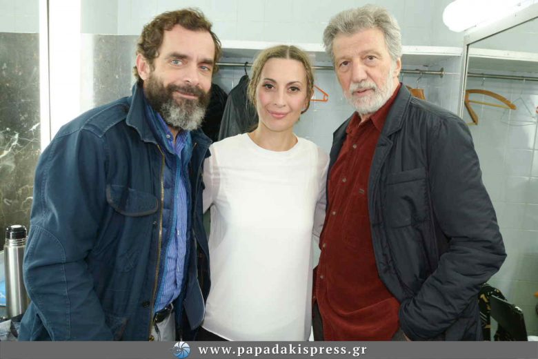 Ο Γιάννης Φέρτης και η επίσης ηθοποιός-σύντροφός του απόλαυσαν την παράσταση, χειροκρότησαν τους συντελεστές και πόζαραν στο φακό μας στο πλευρό του Γιώργου Λυκιαρδόπουλου και των πρωταγωνιστών του έργου.
