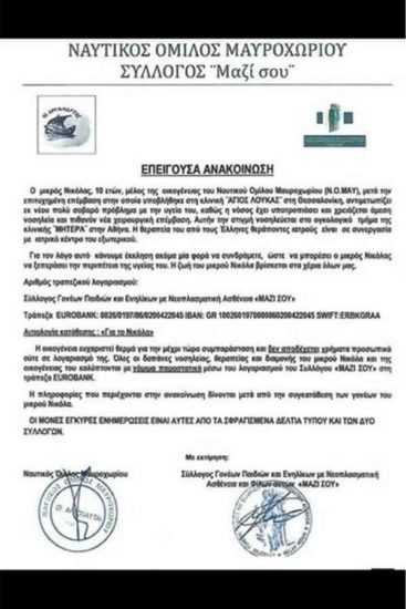 Η ανάγκη του να βοηθήσει ένα συνάνθρωπό μας οδήγησε τον Γιώργο Αγγελόπουλο να κάνει δημόσια έκκληση για βοήθεια.