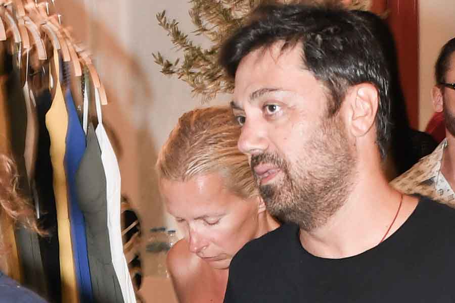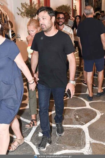 Ο φωτογραφικός μας φακός τον συνάντησε στα σοκάκια του νησιού να περπατά με τη σύζυγό του Βίλλυ. Το ζευγάρι ήταν συνεχώς πιασμένο χέρι- χέρι αποδεικνύοντάς μας για ακόμη μια φορά, γιατί θεωρείται από τα πιο αγαπημένα και ερωτευμένα της εγχώριας showbiz.