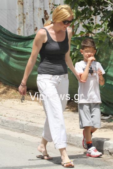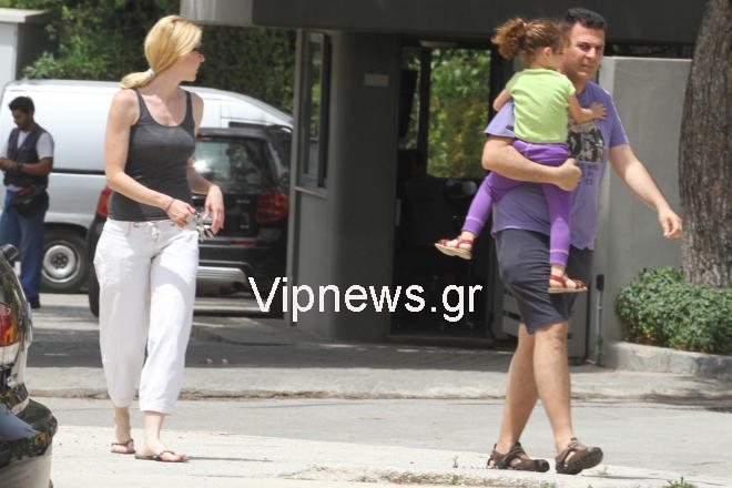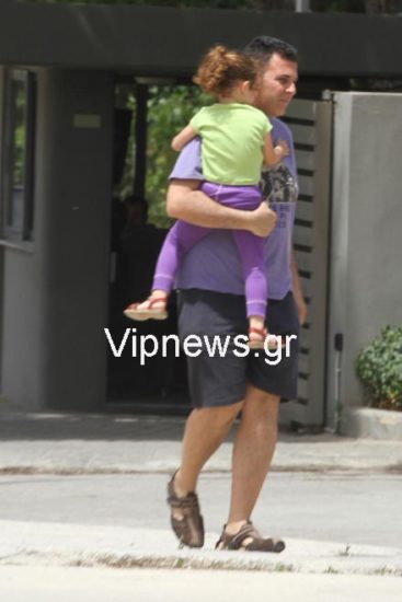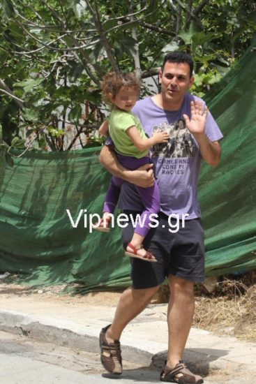 Χαμογελαστός και ευδιάθετος και με casual εμφάνιση ο Γιώργος Καραμέρος κρατούσε την μικρή Έφη αγκαλιά, ενώ η σύζυγός του είχε υπό την επίβλεψή της τον γιο της οικογένειας.
