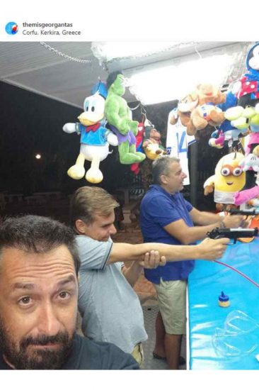 Οι δύο άνδρες πέρασαν την ημέρα του Δεκαπενταύγουστου στο νησί του Ιονίου, κάνοντας κάτι που σίγουρα δε συνηθίζουν. Συγκεκριμένα, επισκέφτηκαν παρέα με το φίλο τους Ηλία Κοκοτό το λούνα παρκ της Κέρκυρας και επιδόθηκαν στη σκοποβολή.