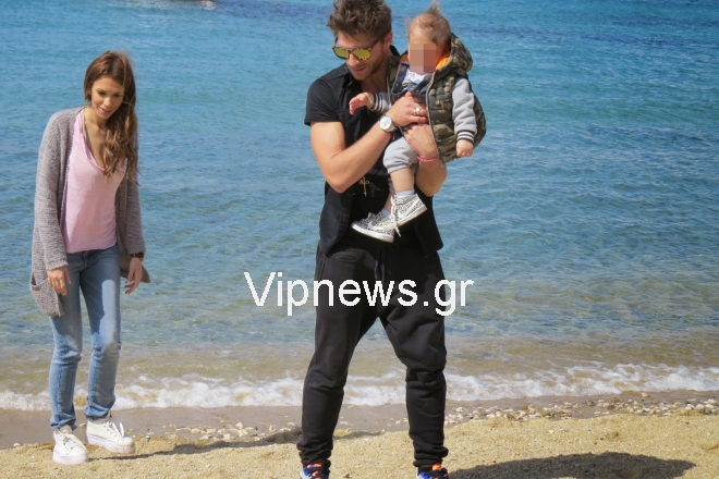 Το ζευγάρι απολάμβανε τις βόλτες του στο νησί των Ανέμων και δεν σταμάτησε να χαμογελά και να είναι ευδιάθετο, απολαμβάνοντας την κάθε στιγμή με τον μικρό.