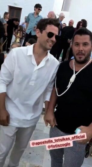Κουμπάρος του ζευγαριού ο Γιώργος Πυρπασόπουλος, ένας από τους πιο στενούς φίλους του γαμπρού. Φυσικά ανάμεσα στους καλεσμένους ήταν και οι συμπαίκτες του ηθοποιού από το Survivor, που είχαν φτάσει ήδη στο νησί από την προηγούμενη μέρα. Ο Κώστας Κοκκινάκης συνοδευόμενος από τη σύντροφό του και ο Κωνσταντίνος Βασάλος με την Ευρυδίκη Βαλαβάνη ήταν από τους πρώτους που έφτασαν στο νησί την προηγούμενη του γάμου, όπως και ο BO, η Σάρα Εσκενάζυ και φυσικά ο Γιώργος Αγγελόπουλος.