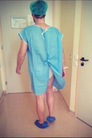 Φορώντας τη ρόμπα του χειρουργείου, ένα σκουφάκι στα μαλλιά και ειδικά προστατευτικά στα πόδια και άφησε να τον βγάλουν μια φωτογραφία, την οποία και συνόδεψε με λεζάντα: «Φοράω το σκουφάκι μου και φεύγω».