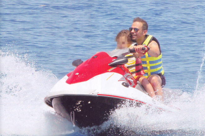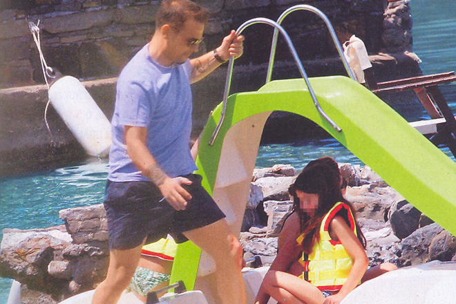 Μαζί με την 9χρονη Μελίνα και τον 5,5 ετών Γιώργο, απόλαυσαν τον ήλιο και τη θάλασσα και έκαναν θαλάσσιο ποδήλατο και τζετ σκι.