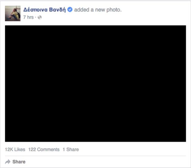 Όπως είδαμε στην ανάρτηση που έκανε στο προσωπικό της προφίλ στο Facebook, η Δέσποινα Βανδή δεν ήθελε να κάνει κάποιο σχόλιο παρά μόνο να ανεβάσει το μαύρο χρώμα ως ένδειξη πένθους για την απώλεια του τραγουδιστή.