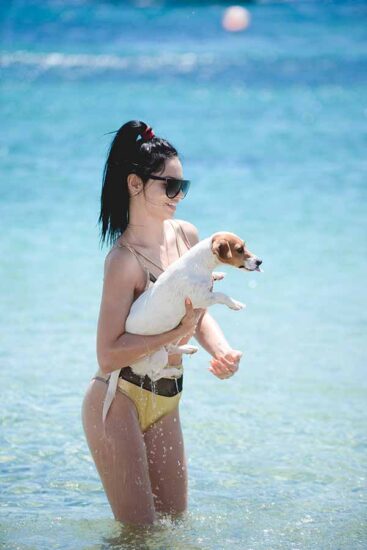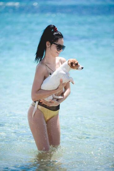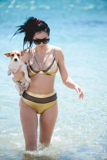 Εμείς τη συναντήσαμε στο Pasaji στον Ορνό, όπου έκανε τις διακοπές της και φορούσε ένα εντυπωσιακό, σε χρυσαφί απόχρωση μαγιό από την Alexandra online boutique, το οποίο αναδείκνυε το καλλίγραμμο κορμί της και όπως ήταν φυσικό, έκανε όλα τα βλέμματα να στραφούν πάνω της.