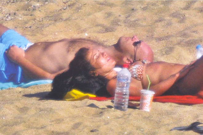 Ο φωτογραφικός φακός του Hello! εντόπισε το ζευγάρι σε μια απομακρυσμένη παραλία του νησιού να απολαμβάνει τη θάλασσα, τον καυτό ήλιο. Με τις πετσέτες τους απλωμένες στην άμμο, καθώς η συγκεκριμένη παραλία δεν είναι οργανωμενη, η γοητευτική ηθοποιός και ο πετυχημένος επιχειρηματίας έκαναν ηλιοθεραπεία και πέρασαν όμορφα μαζί.