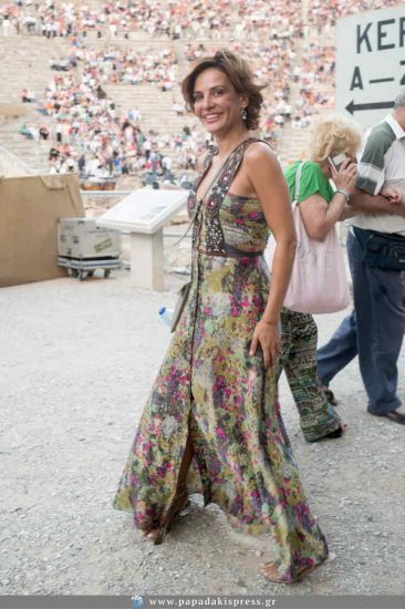 Η γνωστή ηθοποιός βρέθηκε στο αρχαίο θέατρο της Επιδαύρου για να απολαύσει τον καλό της φίλο Τζίμη Πανούση, ο οποίος πρωταγωνίστησε στην κωμωδία του Αριστοφάνη «Ειρήνη». Η Δήμητρα Ματσούκα εντυπωσίασε με την κομψή της εμφάνισή, καθώς επέλεξε να φορέσει ένα πολύχρωμο, μάξι φόρεμα, το οποίο συνδύασε με φλατ πέδιλα και διακριτικά κοσμήματα.