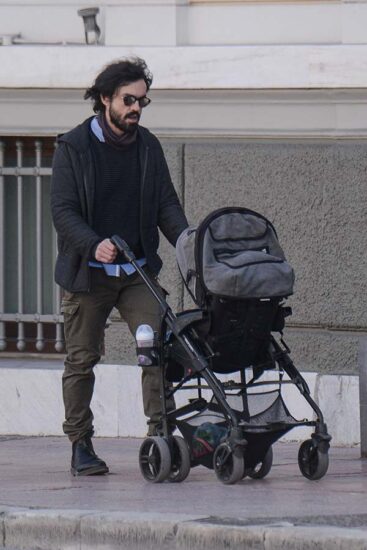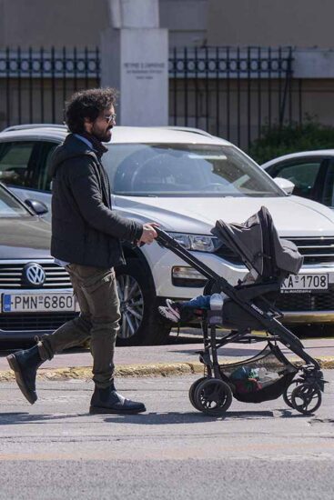 Ο ηθοποιός απολαμβάνει την περίοδο αυτή που ως νέος μπαμπάς, έχει την ευκαιρία να χαίρεται τη μικρή του και να κάνει μαζί της βόλτες στο κέντρο της Αθήνας.