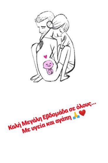 Και μάλιστα επιλέγει έναν ιδιαίτερα ευρηματικό τρόπο, καθώς το κάνει με ένα σκίτσο που ανέβασε στο Instastories της. Εκεί βλέπουμε ένα ζευγάρι να είναι αγκαλιασμένο και στην κοιλιά της γυναίκας ένα μωρό ζωγραφισμένο σε ροζ χρώμα, κάτι που υποδηλώνει πως πιθανόν το μωρό που θα γεννηθεί να είναι κοριτσάκι.