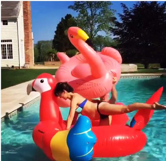Σύντομα θα φέρει στον κόσμο τον γιο της, αλλά όπως βλέπουμε και στην φωτογραφία που ανέβασε στο Instagram παρότι σε προχωρημένη εγκυμοσύνη συνεχίζει να διασκεδάζει με το μαγιό της!