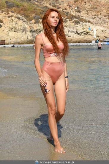 Εντυπωσιακή η Έβελυν Καζατζόγλου την οποία συναντήσαμε σε παραλία της Μυκόνου να απολαμβάνει τον ήλιο και τη θάλασσα.