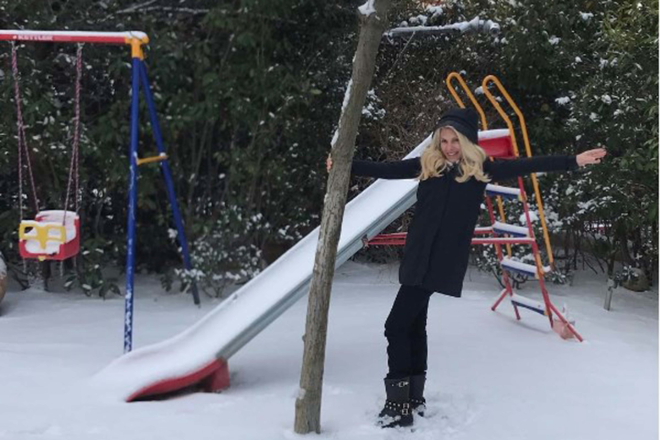 Παιχνίδι με το χιόνι στην παιδική χαρά του σπιτιού της απόλαυσε η Ελένη Μενεγάκη η οποία φυσικά ανέβασε και φωτογραφίες στο instagram.