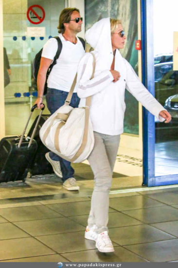 Το ευτυχισμένο ζευγάρι, με casual ντύσιμο και χαλαρή διάθεση, έφτασε στο αεροδρόμιο «Ελευθέριος Βενιζέλος» μετά από το τριήμερο που πέρασε στην Άνδρο.