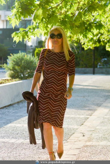Η παρουσιάστρια του Alpha έκανε, μετά το τέλος της εκπομπής «Καφές με την Ελένη», την απογευματινή της βόλτα στους δρόμους του Αμαρουσίου. Η Ελένη Μενεγάκη φορούσε ένα μίντι μπορντό φόρεμα με ιδιαίτερο μοτίβο, το οποίο συνδύασε με nude γόβες. Η απόλυτα κομψή εμφάνιση της παρουσιάστριας και η εμφανώς αδυνατισμένη της σιλουέτα μαγνήτισαν όλα τα βλέμματα.