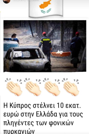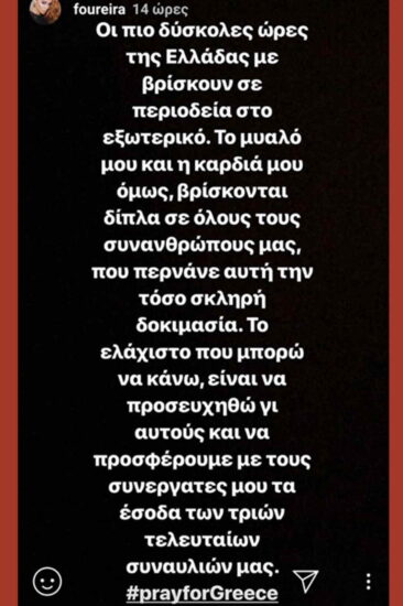 Με τον δικό της τρόπο αλλά ουσιαστικά, η Ελένη Φουρέιρα, συμπαραστέκεται και ενισχύει εμπράκτως τους πυρόπληκτους της Ανατολικής Αττικής.
