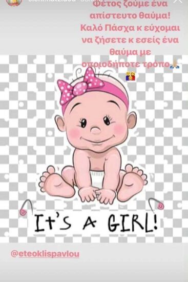 Το μωρό, το οποίο θα είναι ο καρπός του έρωτά της με τον Ετεοκλή Παύλου, θα είναι κορίτσι.