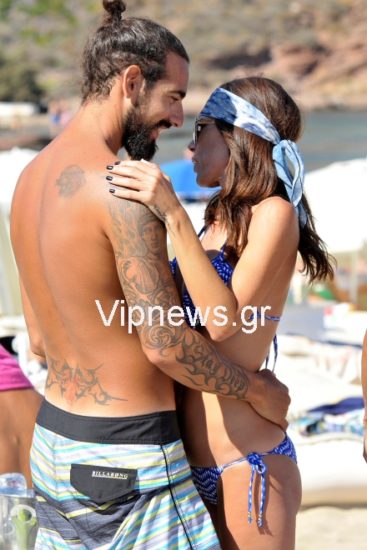Ο φωτογραφικός φακός τους απαθανάτισε να απολαμβάνουν τις βουτιές τους και να χαλαρώνουν σε παραλία του νησιού, ενώ δεν έλειψαν και οι τρυφερές στιγμές και τα φιλιά.