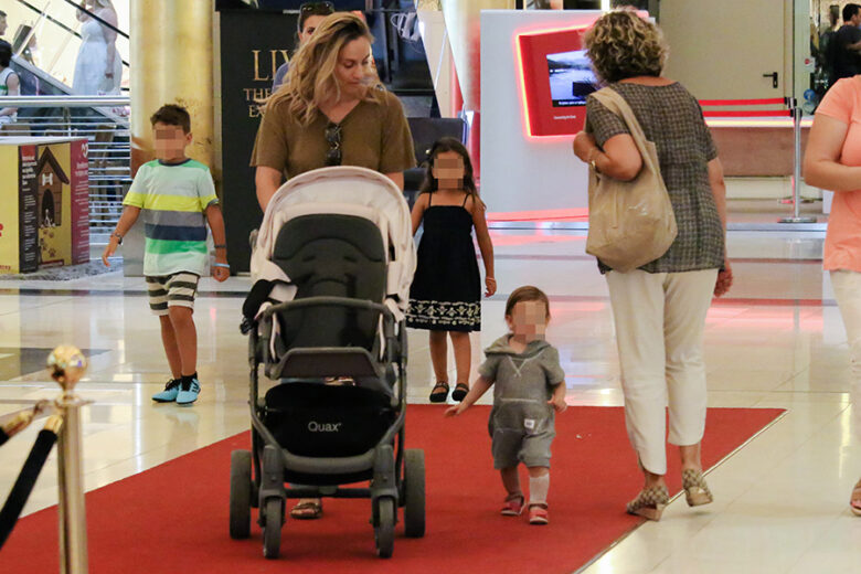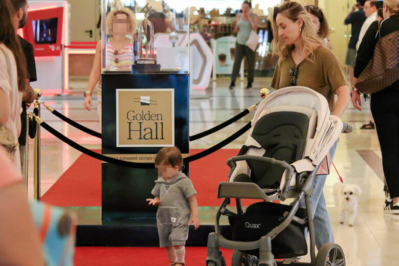 Εμείς τη συναντήσαμε σε γνωστό εμπορικό κέντρο των Βορείων προαστείων, να κάνει τη βόλτα και τα ψώνια της μαζί με τη μικρή Αλεξάνδρα, ντυμένη casual εμφάνιση και χωρίς μακιγιάζ.