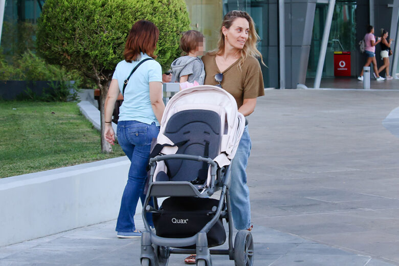 Σέρνοντας πότε το καροτσάκι και πότε έχοντας τη μικρή Αλεξάνδρα αγκαλιά, η Ελεονώρα Μελέτη, έδειξε πόσο χαίρεται τη μητρότητα με την ευτυχία να είναι ζωγραφισμένη στο πρόσωπό της.