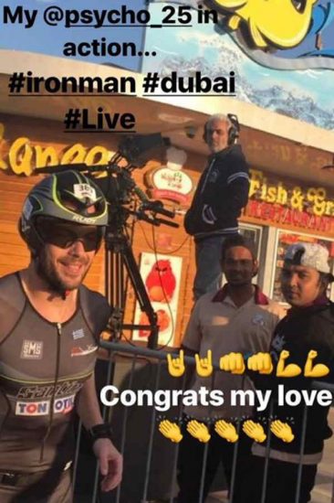 Η μέλλουσα μαμά δημοσίευσε μια φωτογραφία του συζύγου της, ο οποίος βρίσκεται στο Dubai για τον αγώνα τριάθλου «Ironman 70.3». Η Ελεονώρα Μελέτη δε μπορούσε να συνοδεύσει, λόγω προχωρημένης εγκυμοσύνης, τον Θοδωρή Μαροσούλη στο ταξίδι του, ωστόσο μέσα από τα social media, του έστειλε τα συγχαρητήριά της για τη μέχρι τώρα πορεία του.