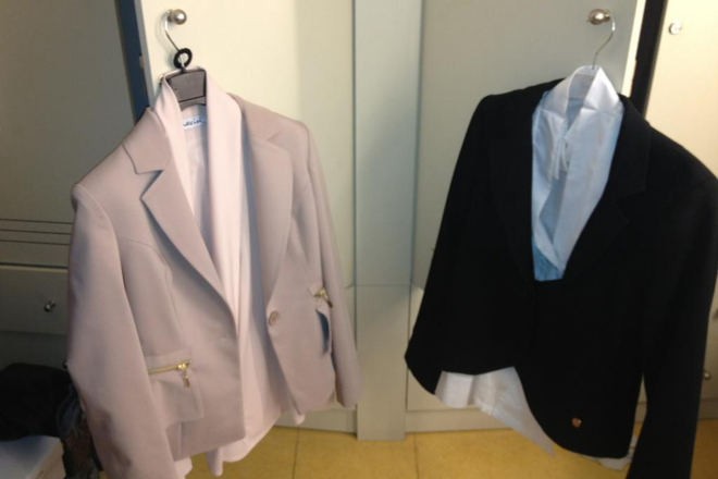 Όπως η ίδια η Ελεονώρα αποκάλυψε με φωτογραφίες που ανέβασε στον λογαριασμό της στο twitter, ενώ από πάνω φορούσε ένα κομψό σακάκι, κάτω από το τραπέζι, εκεί δηλαδή που η κάμερα δεν μπορούσε να καταγράψει, φορούσε αθλητική φόρμα και sneakers.
