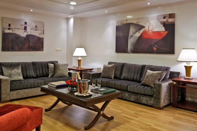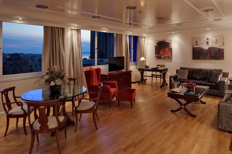 Στον τελευταίο όροφο του μοναδικού πολυτελούς ξενοδοχείου 5 αστέρων Piraeus Theoxenia δεσπόζει η Προεδρική Σουίτα των 140 τετραγωνικών μέτρων.