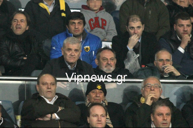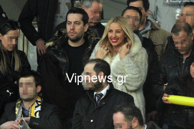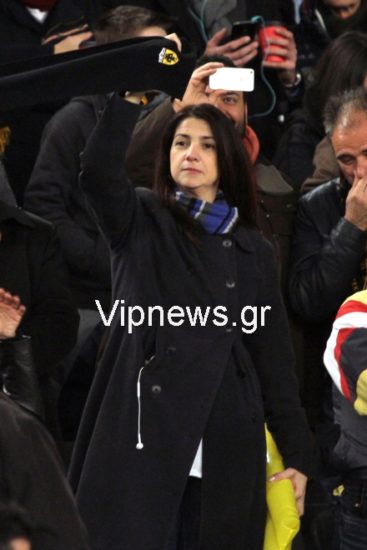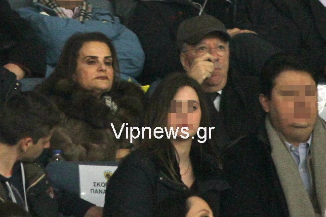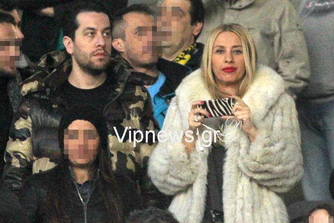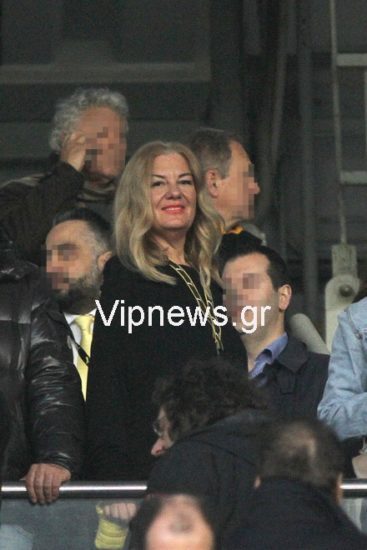 Στην κερκίδα των VIP, ο φακός εντόπισε τον Χάρη Σιανίδη, τον Πάνο Κιάμο τον Γιώργο Μητσικώστα κ.α. Εκεί ήταν και η Γωγώ Μαστροκώστα, σύζυγος του προπονητή της κιτρινόμαυρης ομάδας, Τραϊανού Δέλλα.