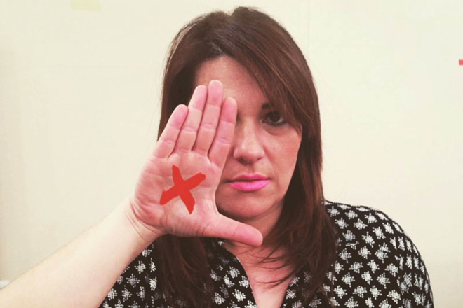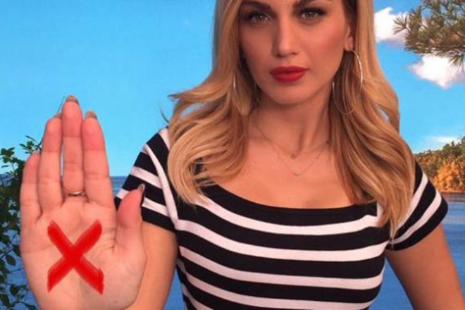 Με ένα κόκκινο απαγορευτικό σταυρό στην παλάμη τους η Κωνσταντίνα Σπυροπούλου και η Αννίτα Πάνια, φωτογραφίζονται για λογαριασμό μίας νέας εκστρατεία που γίνεται για καλό σκοπό!