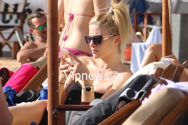 Ωστόσο η ίδια ήταν πότε απορροφημένη στο κινητό της και πότε στις βουτιές που έκανε στη θάλασσα, ενώ πέρασε πολλή ώρα μιλώντας με την παρέα που τη συνόδευε στη χαλαρή αυτή εξόρμηση.