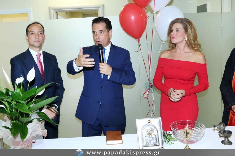 Στα εγκαίνια των νέων γραφείων της εταιρίας, ο Άδωνις και η Ευγενία, εμφανίστηκαν μαζί με παιδιά τους Περσέα και Αλκαίο, οι οποίοι δεν έκρυβαν τη χαρά τους και χαμογελούσαν συνεχώς στο φωτογραφικό φακό. Εντυπωσιακή η εμφάνιση της γνωστής παρουσιάστριας, η οποία έκλεψε τα φλας με το κόκκινο μίντι, φόρεμά της.
