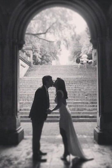 Πρόκειται για μια καλλιτεχνική, ασπρόμαυρη φωτογραφία στην οποία οι νεόνυμφοι ανταλλάσουν το πρώτο τους φιλί ως παντρεμένοι.