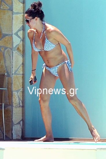 Ο φωτογραφικός φακός την εντόπισε να απολαμβάνει τον ήλιο στα νερά της πισίνας στο ξενοδοχείο όπου διέμεινε στη Ρόδο και φυσικά εντυπωσίασε με το καλλίγραμμο κορμί της.