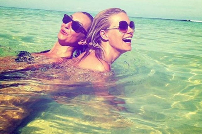 Ξεχωρίζουν φυσικά εκείνα όπου η ξανθιά παρουσιάστρια και ηθοποιός φοράει τα μαγιό της και βουτάει σε θάλασσες και πισίνες μακριά από τις φωτογραφίσεις και τα τηλεοπτικά studio.