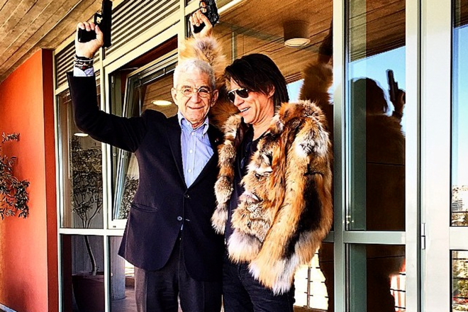 Όπως αποκαλύπτει και η εικόνα, ο Ηλίας Ψινάκης φοράει γούνινες μπότες και γούνινο γιλέκο και μαζί με τον Γιάννη Μπουτάρη κρατούν ανά χείρας δύο περίστροφα στοχεύοντας στον ουρανό. «ΠΡΟΒΑ ΚΟΙΝΗΣ ΕΚΚΙΝΗΣΗΣ ΜΑΡΑΘΩΝΙΩΝ ΘΕΣΣΑΛΟΝΙΚΗΣ-ΜΑΡΑΘΩΝΑ ΣΤΙΣ 5 ΑΠΡΙΛΙΟΥ ΜΕ ΓΙΑΝΝΗ ΜΠΟΥΤΑΡΗ…!!!» ήταν το συνοδευτικό σχόλιο του Ηλία Ψινάκη κάτω από τη φωτογραφία που ανήρτησε!