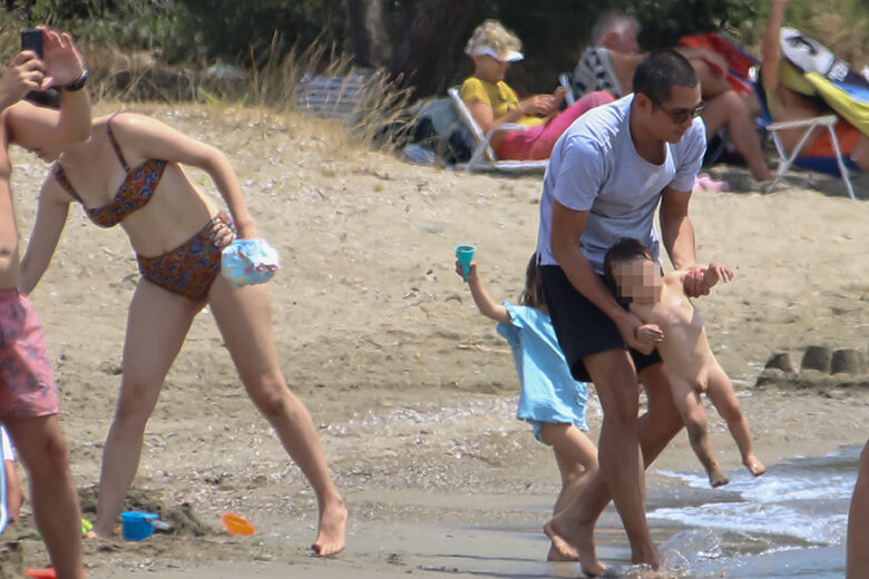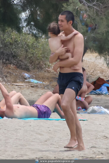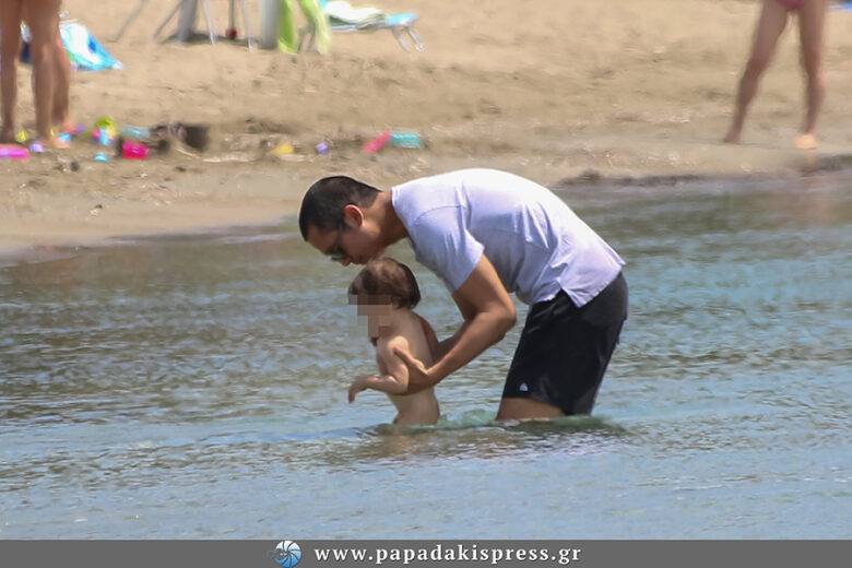 Ο Σωτήρης Κοντιζάς, πέρασε αρκετή ώρα παίζοντας με τα παιδιά του στη θάλασσα και δεν άφησε από την αγκαλιά του το μικρό του γιο, δείχνοντάς μας έτσι πόσο στοργικός πατέρας είναι.