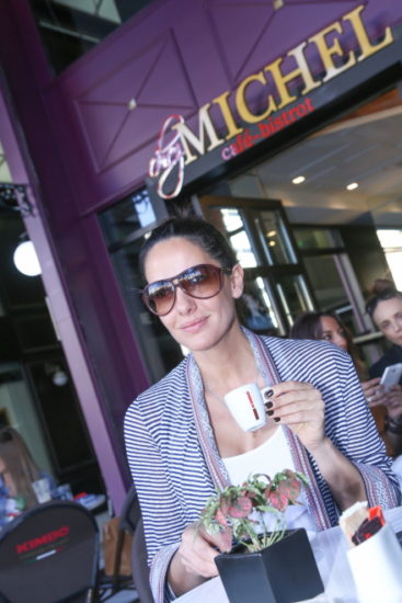 Το πανέμορφο μοντέλο είχε την ευκαιρία να απολαύσει τον καφέ του στον ιδιαίτερα ατμοσφαιρικό εξωτερικό χώρο του café και να διαλέξει μέσα από την μεγάλη ποικιλία καφέ που διαθέτει το café bistrot Michel.