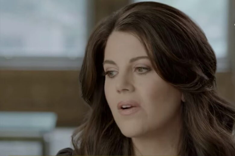 Σύμφωνα με τα όσα αναφέρει μπροστά στην κάμερα η ίδια, στις 14 Νοέμβρη του 1995 ως νεαρή τότε βοηθός, είχε κληθεί στον Λευκό Οίκο προκειμένου να βοηθήσει με τα τηλέφωνα και εκείνη την ημέρα γινόταν στον ίδιο χώρο και ένα μικρό πάρτι προς τιμή ενός εργαζόμενου, παρουσία του πάντα φιλικού και ιδιαίτερα κοινωνικού, προέδρου Κλίντον. Στην περιγραφή της αναφέρει πως ενώ καθόταν κοντά στον πρόεδρο, συνειδητοποίησε ότι φαινόταν το στρινγκ εσώρουχό, κάτι που πρόσεξε ο πρόεδρος και λίγη ώρα αργότερα και ενώ εκείνη έξω από το γραφείο του, της έκανε νόημα να περάσει. Η Μόνικα, πάντα σύμφωνα με την περιγραφή της, εκμυστηρεύτηκε στον Μπίλ Κλίντον ότι του αρέσει και έτσι άρχισαν να φιλιούνται μέσα στο σκοτεινό δωμάτιο και μετά από εκείνο το φιλί, πήγε στο γραφείο της, για να επιστρέψει μετά από λίγο για να συνεχίσει τα φιλιά με τον πρόεδρο. Η σχέση της με τον πρόεδρο συνεχίστηκε τα επόμενα δύο χρόνια, στα οποία οι δυο τους συναντιόντουσαν τουλάχιστον μια φορά την εβδομάδα.