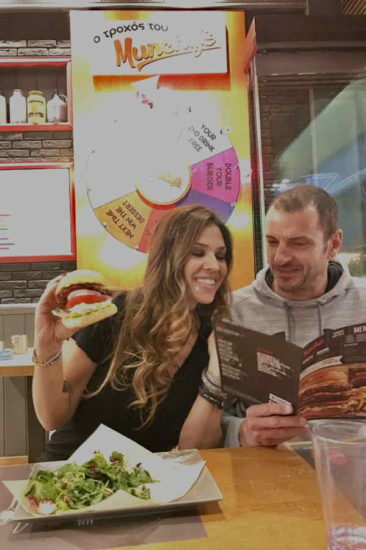 Η Ναταλία Δραγούμη με το σύζυγό της στο Munchy’s Burger Restaurant στην πλατεία της Κηφισιάς