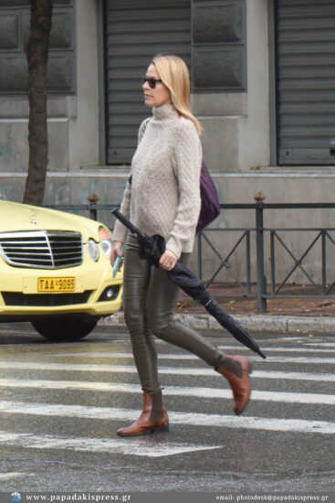 Το ντύσιμό της ήταν ομολογουμένως πολύ σωστό, καθώς εκείνη την ημέρα έβρεχε, άλλωστε η ίδια είναι γνώστης του στυλ κάτι που απέδειξε και τώρα με την ενδυματολογική της επιλογή.