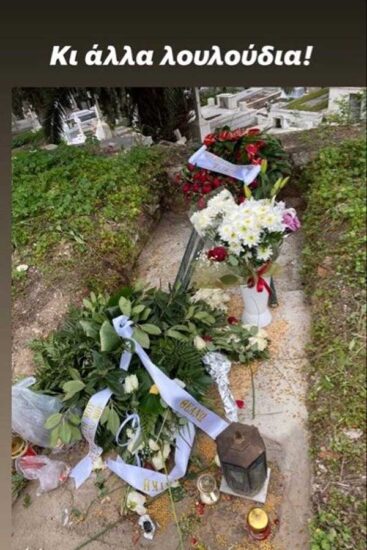 Μοιράστηκε μάλιστα με τους διαδικτυακούς της φίλους, εικόνες από την επίσκεψή της, στις οποίες βλέπουμε τον τάφο του Κώστα Βουτσά με την ίδια να σχολιάζει ότι ακόμη υπάρχουν πολλά λουλούδια να τον στολίζουν.