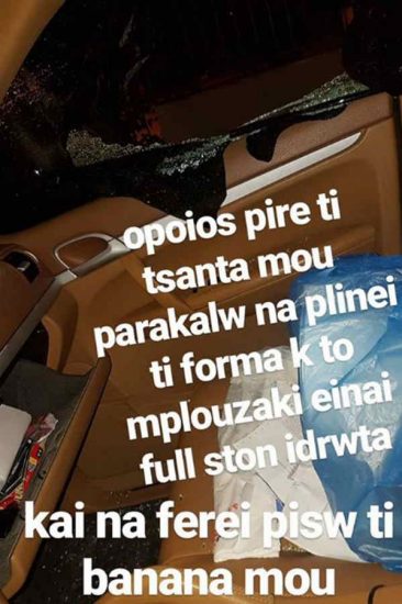 Το γνωστό μοντέλο με μια ανάρτηση στα social media αποκάλυψε πως άγνωστοι έσπασαν το παράθυρο του αυτοκινήτου του και του έκλεψαν προσωπικά αντικείμενα. Στη φωτογραφία που μοιράστηκε με τους διαδικτυακούς του φίλους, μπορεί κανείς να διακρίνει τα θρυμματισμένα γυαλιά του μπροστινού παραθύρου και τις ζημιές που προκάλεσαν οι ληστές.