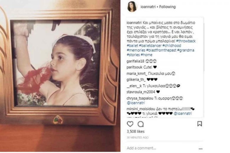 …μια φωτογραφία από την παιδική της ηλικία, στην οποία η ίδια, ως μικρό κοριτσάκι, φοράει τη στολή μπαλαρίνας και χορεύει.