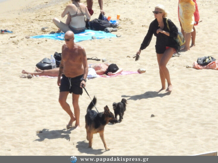 Χαλαροί, ήρεμοι και πολύ ευδιάθετοι, ο ισχυρός άντρας των media και η σχεδιάστρια ρούχων απολάμβαναν τις βουτιές τους στα καταγάλανα νερά του νησιού των ανέμων.