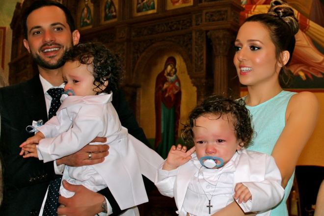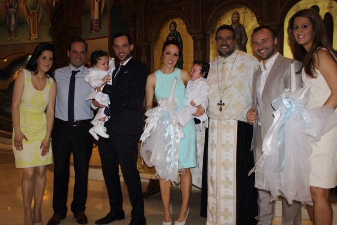 Μπορεί να μην κατάφεραν τελικά να υλοποιήσουν την επιθυμία τους να βαφτίσουν τους γιους τους στην Ελλάδα, ωστόσο η χαρά τους ήταν εξίσου μεγάλη καθώς μεταξύ συγγενών και φίλων τελέστη το μυστήριο σε ελληνικό ναό στην Αμερική.