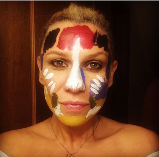 Ήταν η σειρά της Αέλια να βγάψει την μαμά της, οπότε πήρε τα πινέλα και τα χρώματα και ξεκίνησε το έργο της στο πρόσωπο της!