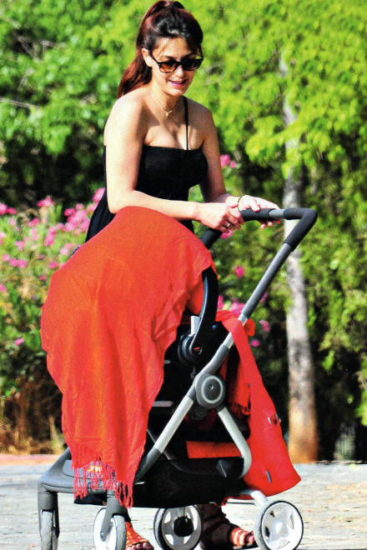 Ο φωτογραφικός φακός του Ok απαθανάτισε την ευτυχισμένη μανούλα κατά τη διάρκεια της πρώτης της βόλτας με τον μικρούλη Πιλαφά junior στη γειτονιά τους, στον πεζόδρομο του Θησείου.